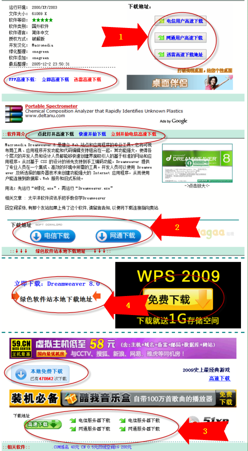 这样一个下载页面,充斥着林林总总的下载按钮,满屏幕的炫光闪耀着,让你在N次错误点击后懊恼的怀疑自己的智商~